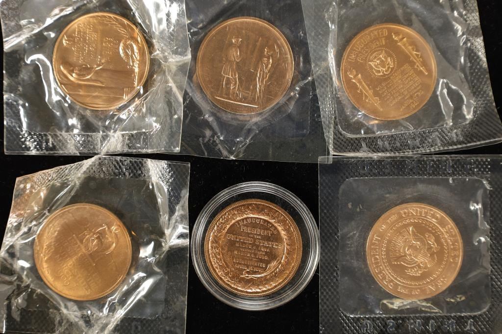 5 ARE IN ORGINAL MINT PLASTIC AND 1 IN HARD PLASTIC CAPSULE. JOHN F. KENNEDY, WILLIAM TAFT, ABRAHAM LINCOLN, FRANKLIN PEIRCE AND WARREN G. HARDING