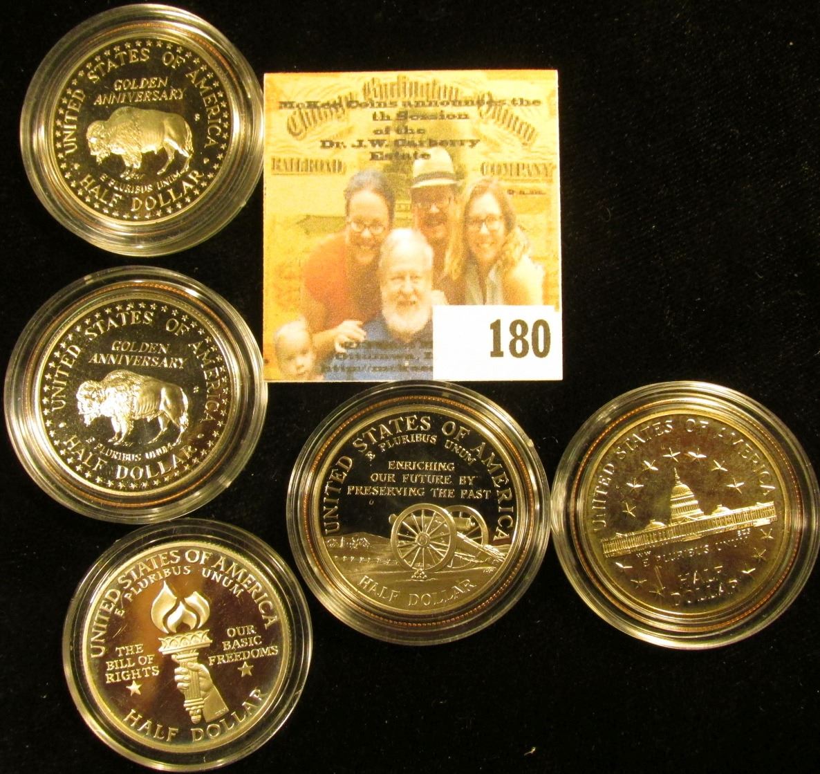 5 PROOF COMMEMORATIVE HALF DOLLARS… INCLUDED INTHIS LOT IS A SILVER JAMES MADISON/CONSTITUTION, BICE