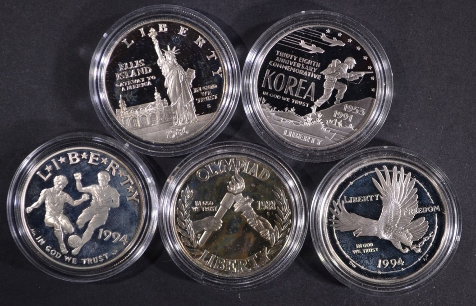 1988 OLYMPIC S, 1986 S STATUE OF LIBERTY, 1993 P WWII, 1994 P PRISONER OF WAR, 1994 S SPECIAL OLYMPICS. ESTIMATE $215 - $220.