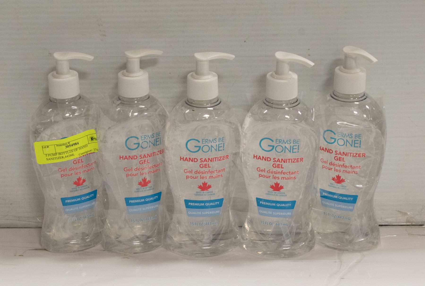 5 PUMP BOTTLES OF HAND SANITIZER,443ML