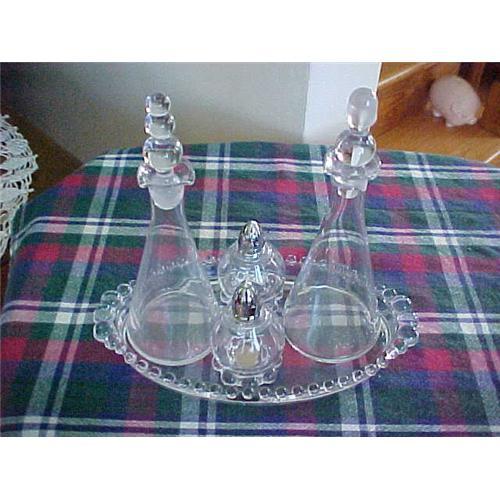 5 Pc. Condiment Set (Candlewick);9" Tray; 7.5" Oil; 7.5" vinegar; Salt and Pepper set