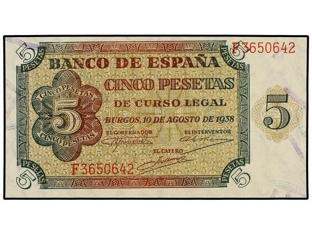 5 Pesetas. 10 Agosto 1938. Serie F. Ed-D36a. EBC.