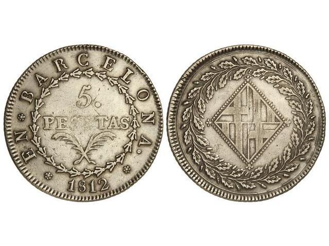 5 Pesetas. - 1812. - BARCELONA. - (Rayitas y pequeños golpecitos). Cal-20. MBC+. - -
