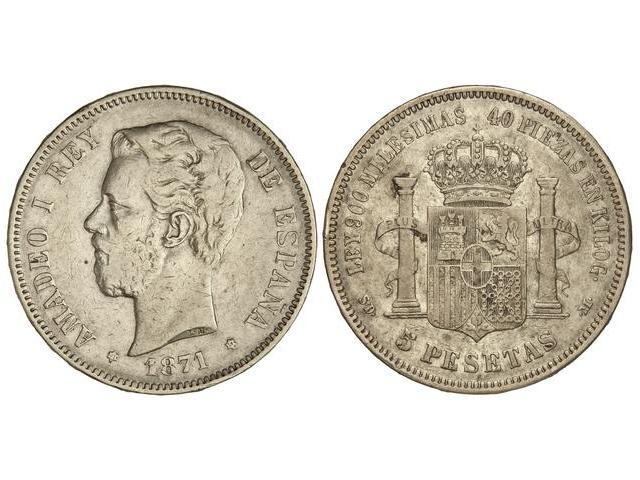 5 Pesetas. 1871 (*18-18). S.D.-M. Cifras de la 1ª estrella algo flojas. (Golpecitos en canto). MBC.