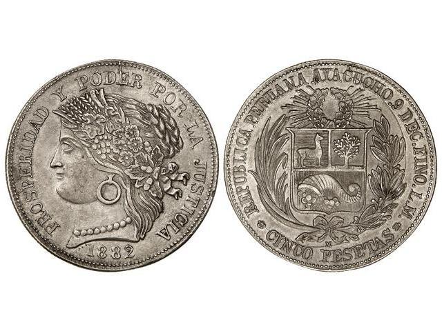 5 Pesetas. 1882-LM. AYACUCHO. AR. KM-201.3. MBC+.
