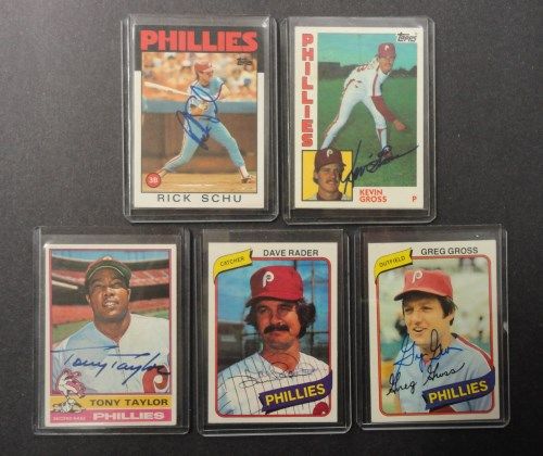 Tony Taylor, Dave Rader, Greg Gross, Kevin Gross & Rick Schu. Mostly NM Est. Value $15.00 -$20.00.