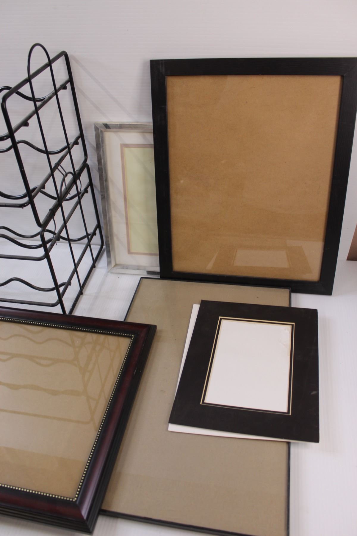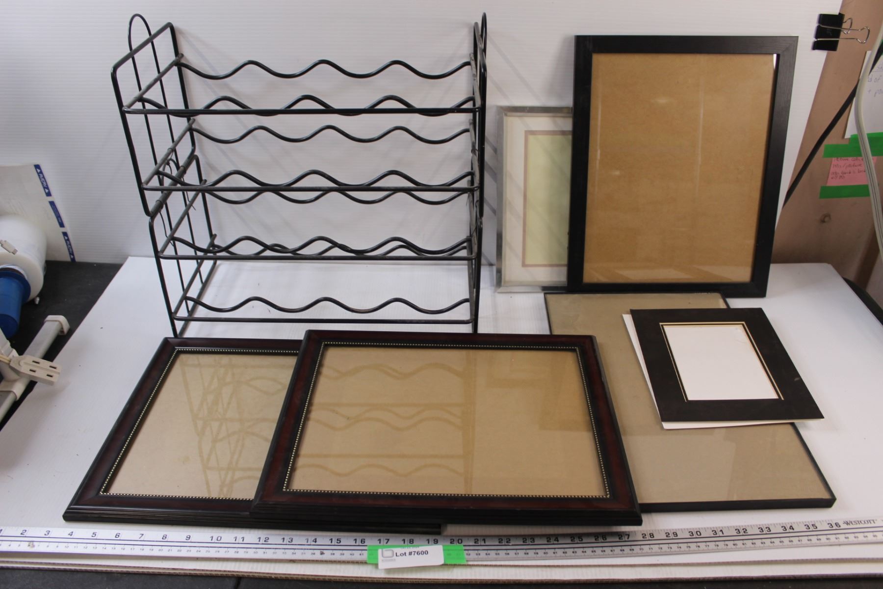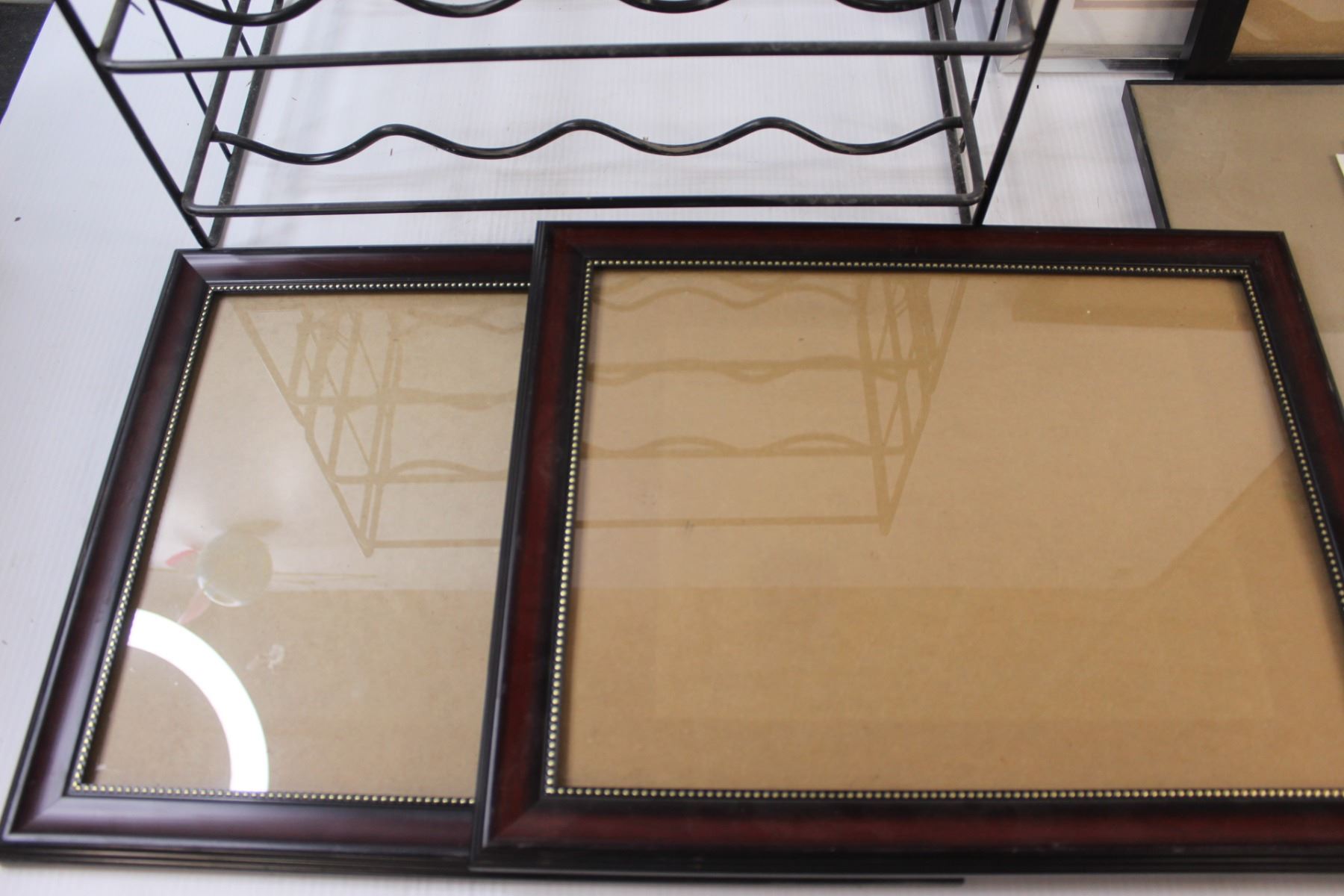 (5) Picture Frames - Assorted Sizes & Metal Wine Rack - 18" x 16" x 9"