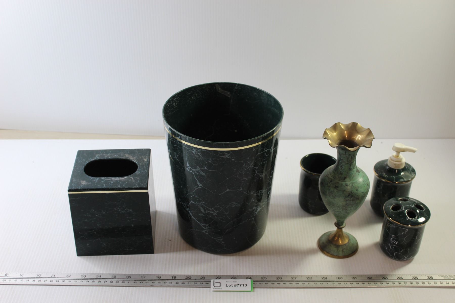 5- Piece Bathroom Set - Garbage, Soap, Toothbrush Holder, etc. + Vase