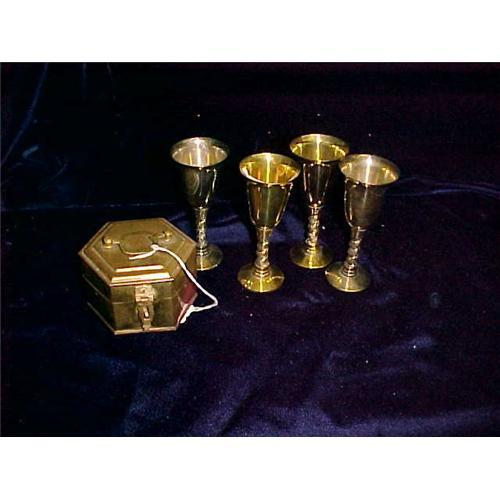 </font></strong>5 Piece Collection Brass Decorative Items. Four Brass Footed Tiny Goblets 4" high and one 3x2 6 sided brass box. Box made in India. Goblets say Made In Spain.</font>