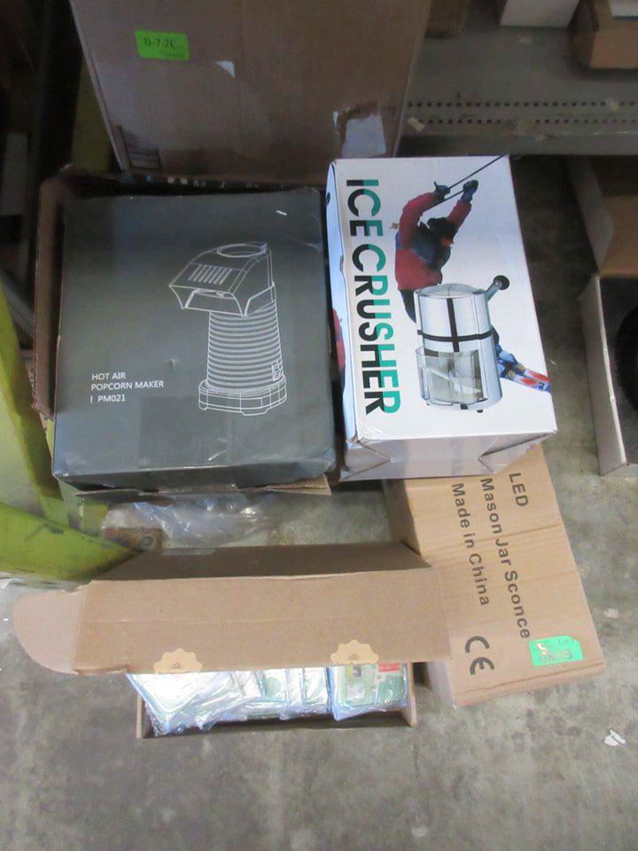 Ice crusher, Mason Jar Light Sconce, Hot Air Popcorn Maker, Tack-It Adhesive and a juicer.