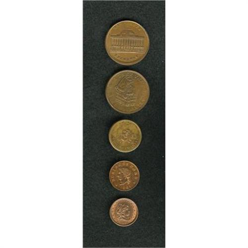 5-Piece Mixed Civil War-Hard Times Token Lot