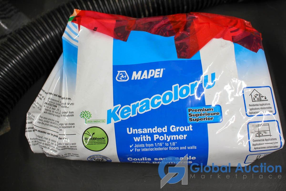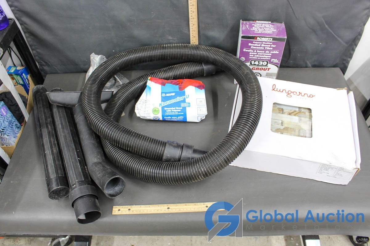 5 Piece Sop Vac Hose, Half Bag of Unsanded Grout, Sanded Grout & Incomplete Box of Mosaic Glass Tile