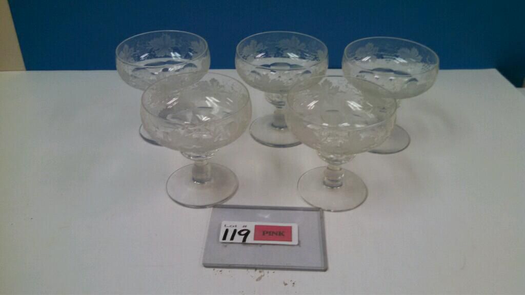 (5) Piece set of 1920's Stuart Crystal-Grape Vine Design Dessert Bowls. For one money