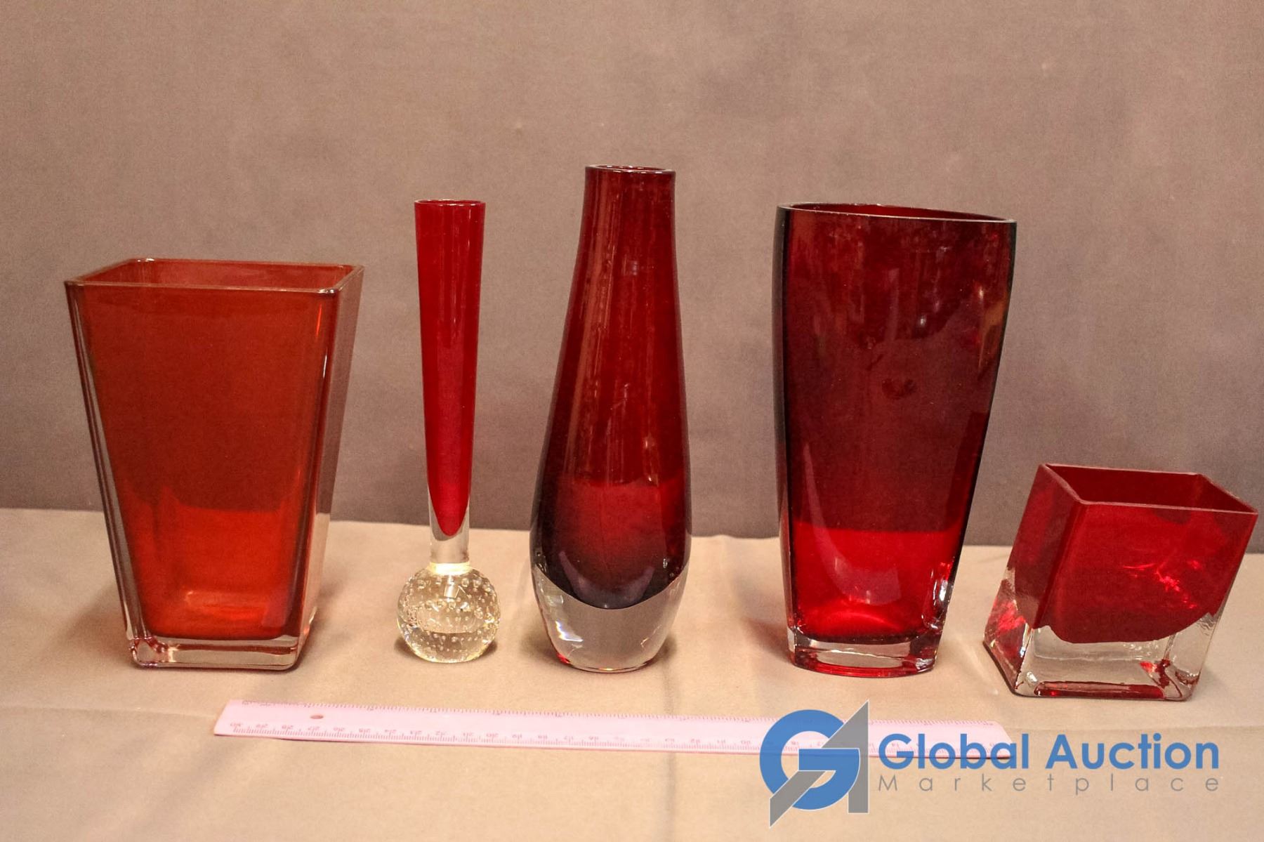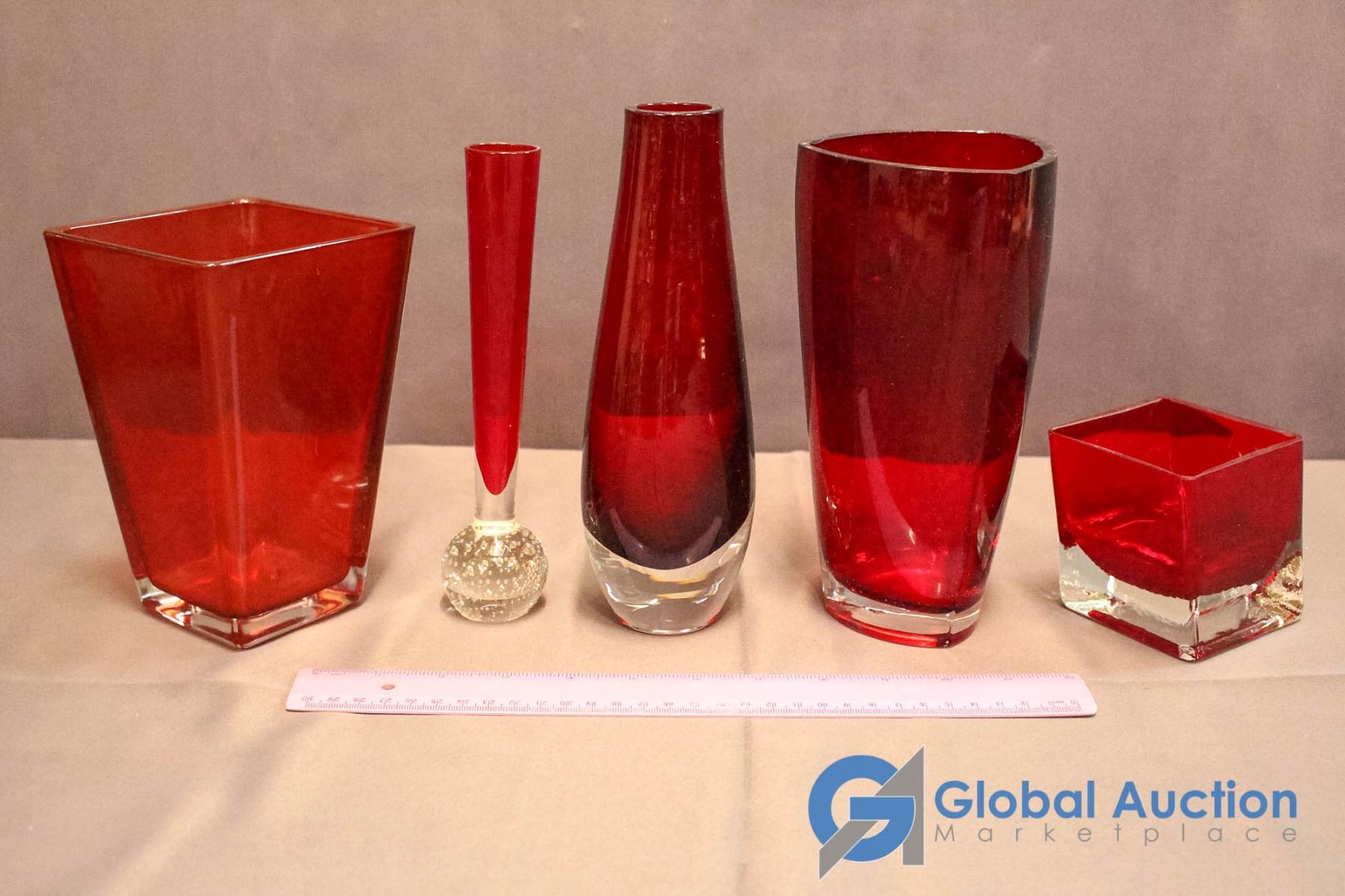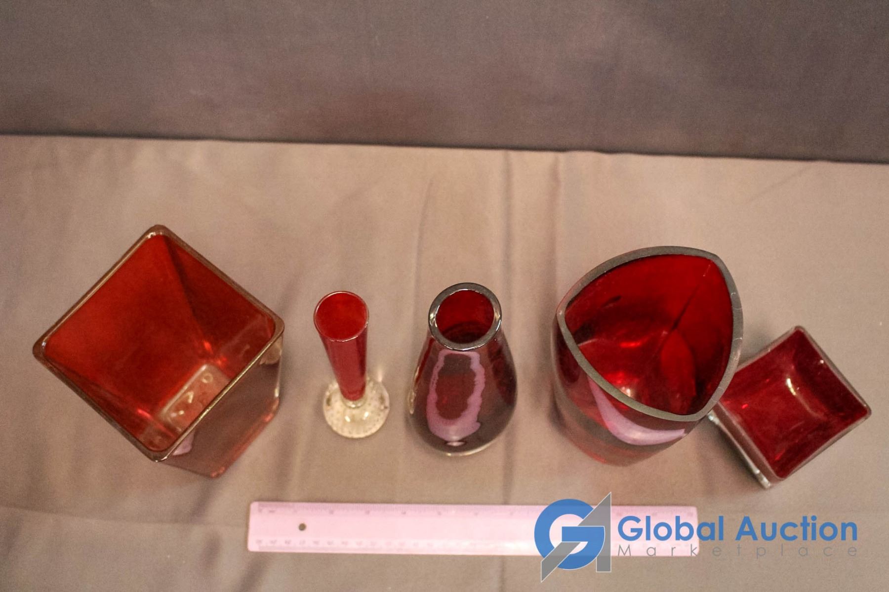 5 Pieces Assorted Ruby Red Glassware