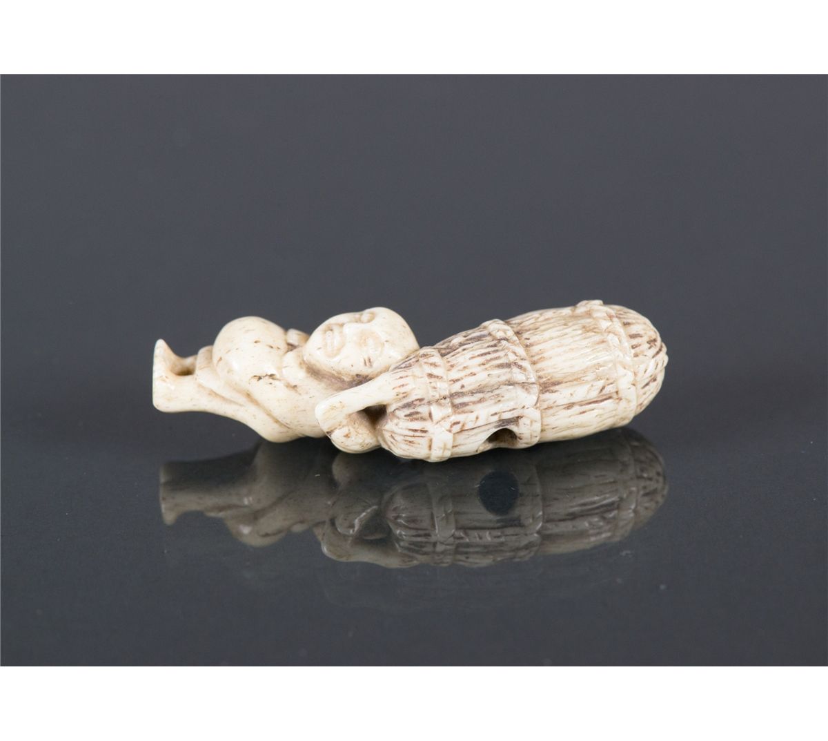 Five pieces of Japanese bone carved netsuke; featuring various animals forms; pierced for suspension; H: 1 cm, D: 4 cm, 80 grams total