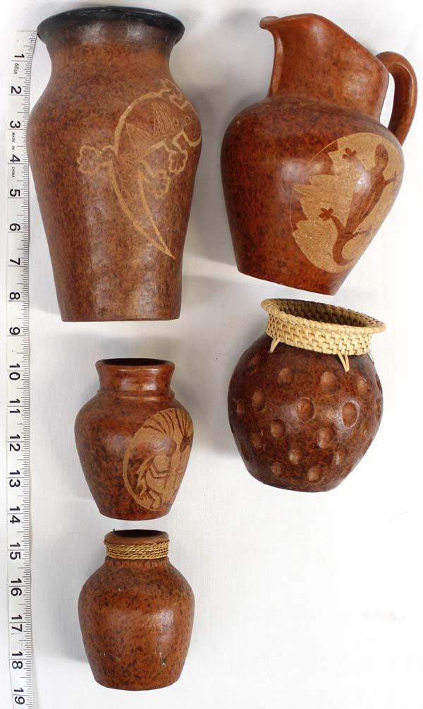 5 Pieces of African Redware Pottery, largest measures 8'' x 5''