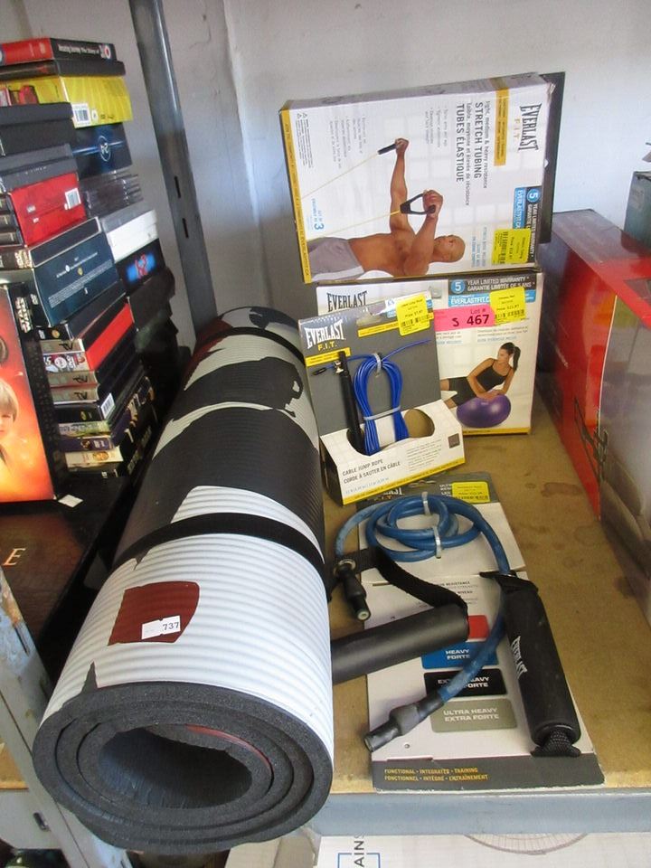 Yoga mat, exercise ball, resistant bands, jump rope & more