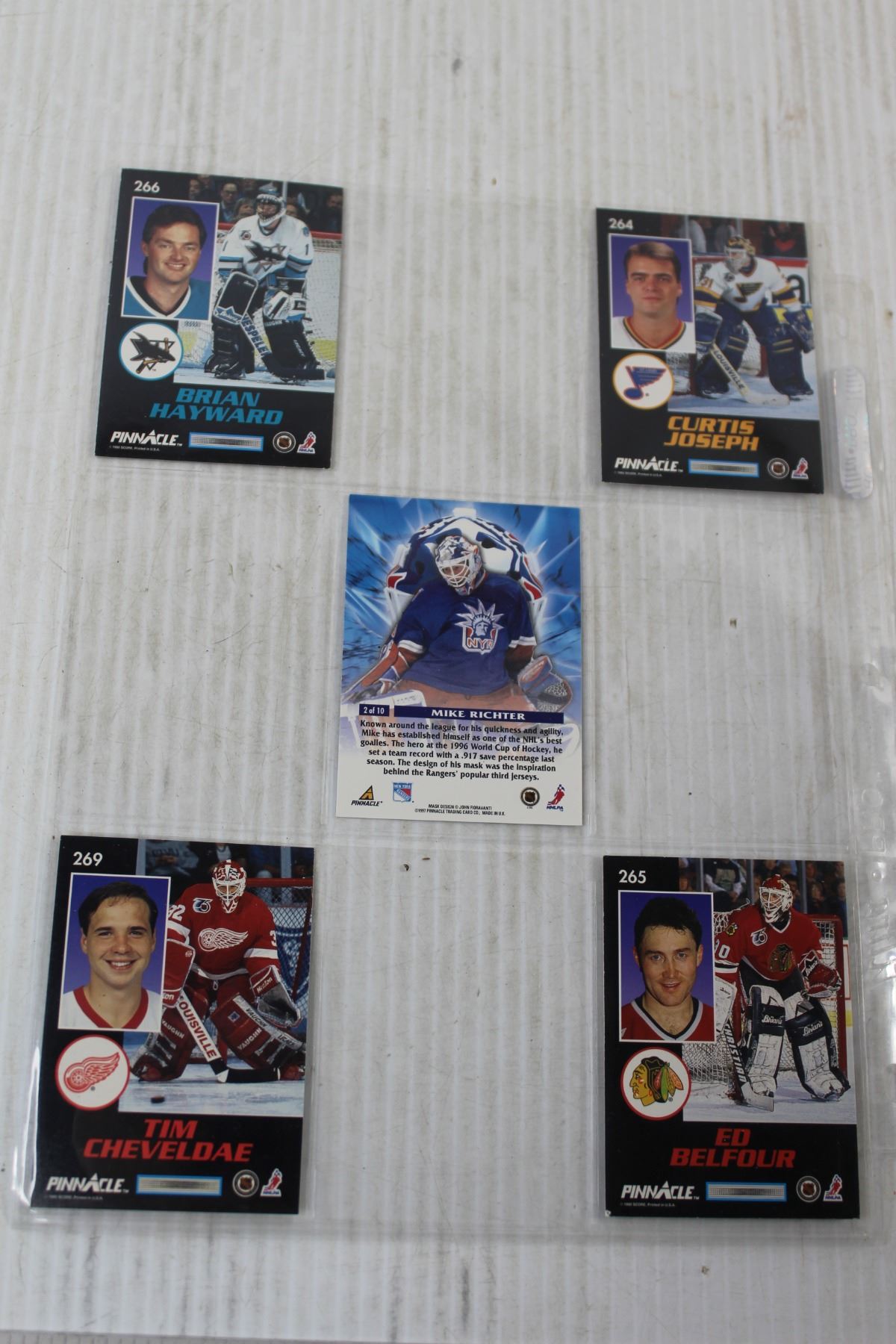 (5) Pinnacle Goalie Mask Cards - Curtis Joseph, Brian Hayward, Mike Richter, Tim Cheveldae, and Ed Belfour, Consigner Says Mint Condition