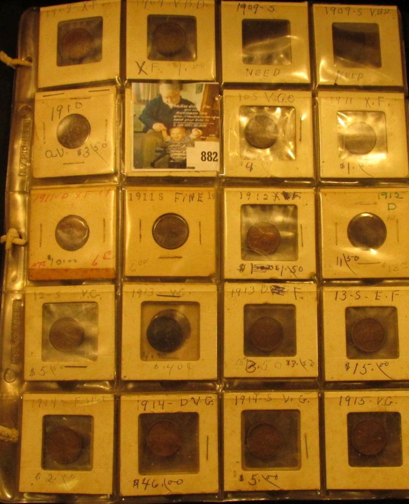 (5) Plastic Pages with (69) Lincoln Cents including a 1909 P & P VDB, and several better dates including a 1914 D in VG.