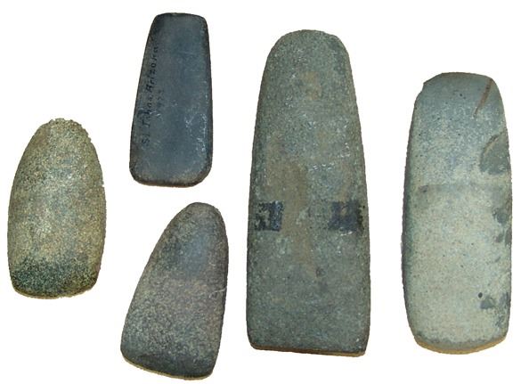 Group of five very nice excavated stone celts all with decent blades, one may also be an axe head. All in very good condition.,Pre Historic,Largest 6-3/4"