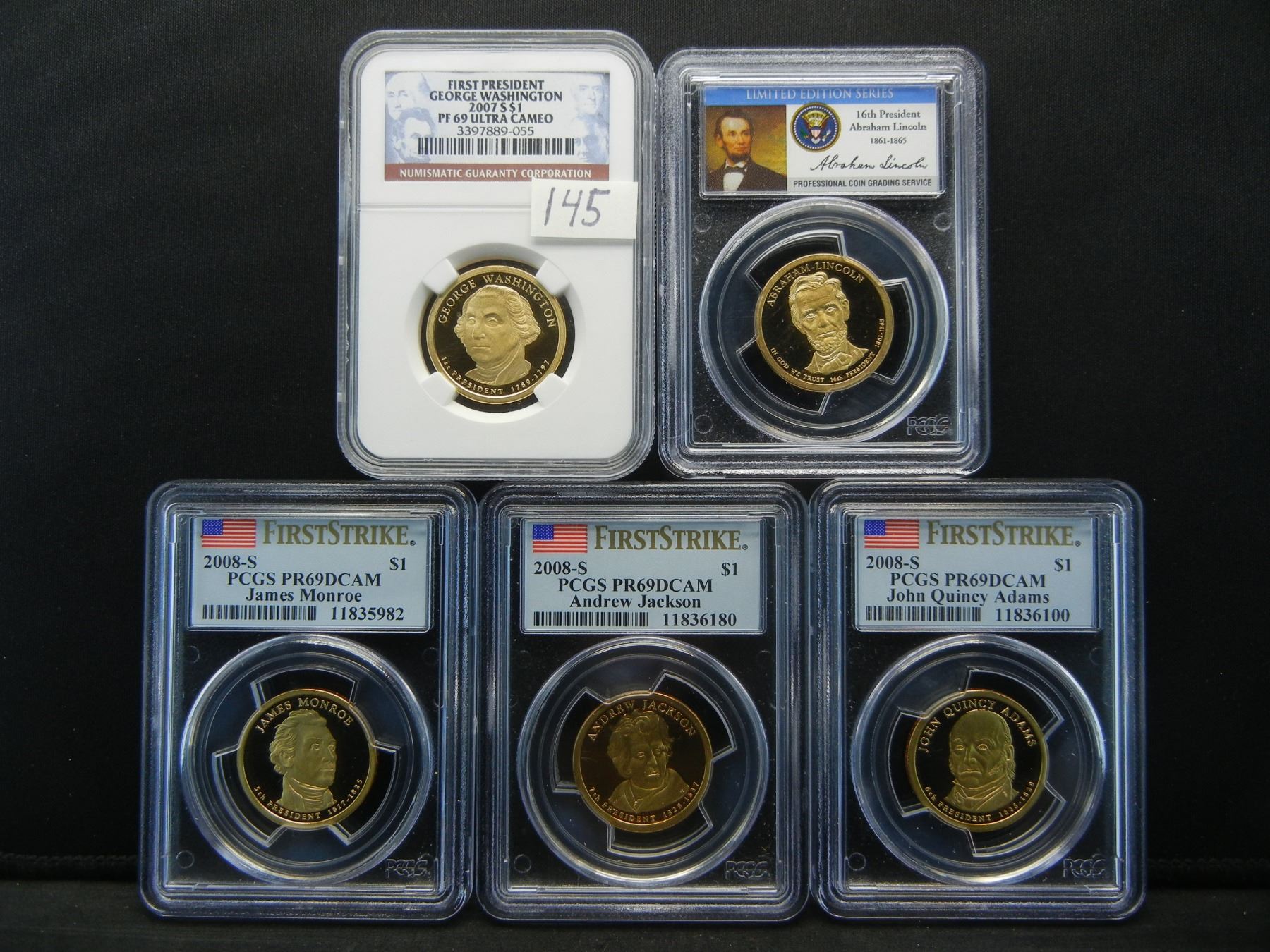 (5) Presidential Dollars Proof, Graded By NGC and PCGS