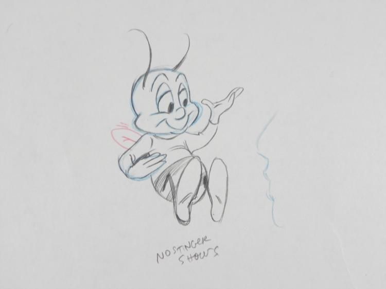 Buzz to the rescue * * 5 Original Animation DrawingsDetails: Animation notations and peg holes * Original "rough" animation drawing, in black, blue, and red pencil * Size of drawing: 10 1/2 x 12 1/2 inches * Condition: Very good * Traditional animation is a * multi-step process which includes various types of art techniques. * Drawings are a key part of the process, in which the animator creates * the design and movement of the characters. Drawings are then transferred * onto acetate cels. There are 5 different drawing in this auction. *