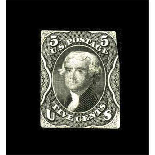 <B>5¢ Proof "Stamp".</B></I> This is a stamp-sized cut-out of the 5¢ First Issue Essay Printing done in black on white india paper (Milton 1E5F.3). The provenance for this piece goes back to the Tom O'Mara Collection. It has been cut down to the size of a postage stamp. The "stamp" has been submitted to the expert committee of the Philatelic Foundation. The Foundation issued a photo certificate dated 4/18/91 declaring this to be an unlisted essay, "We are of the opinion that it is a genuine proof in black, cut from a 5¢ Postage Currency (Type of Scott 1)." The photo certificate is enclosed with the lot.<BR><BR><b>Shipping:</b> Coin/Currency (<a target="_blank" href="http://www.heritageauctions.com/common/shipping.php">view shipping information</a>)