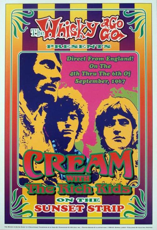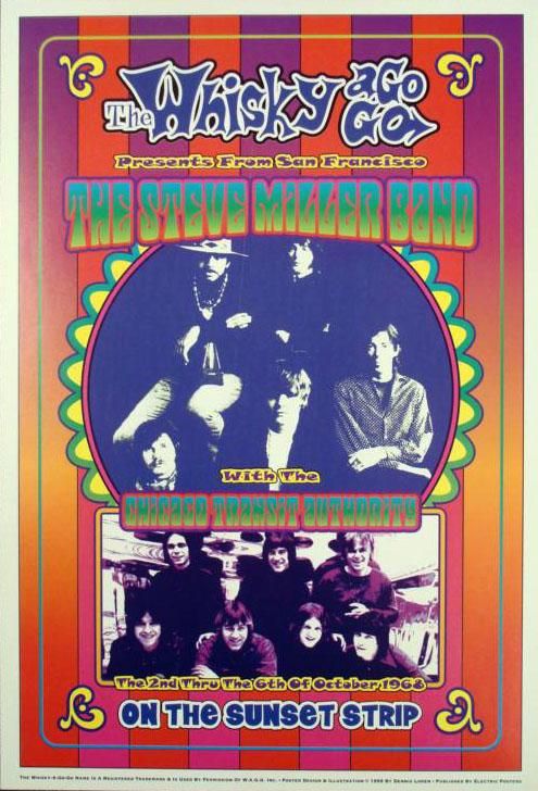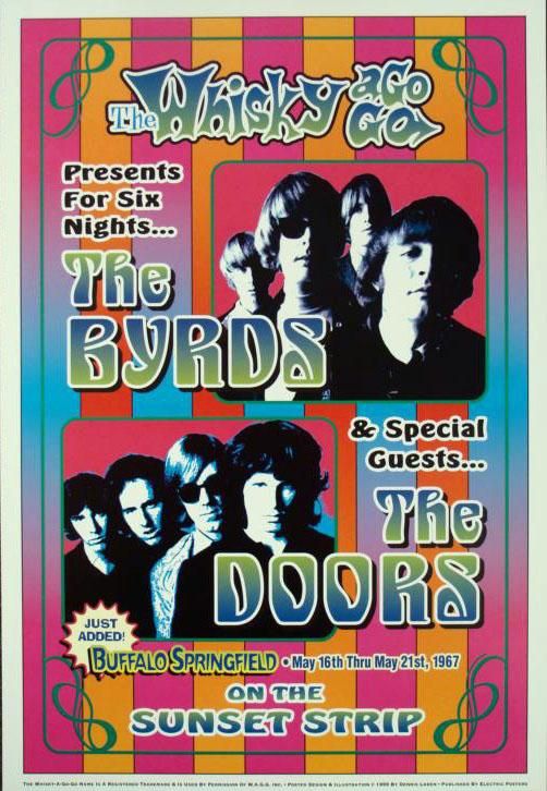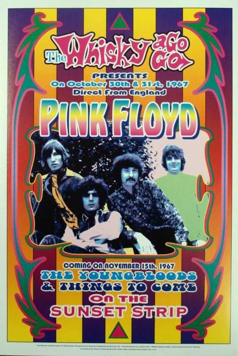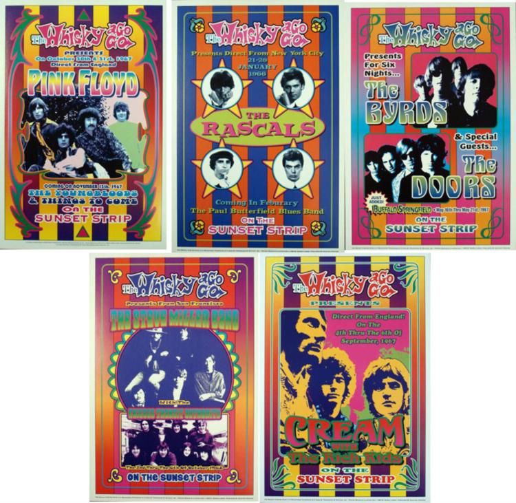 These are 5 reproductions of original 1967 concert posters from The Whisky a Go Go in Los Angeles, featuring some great late 1960's psychedelic rock bands. * Size: 13 1/2" x 20" (approximately) Medium: Heavy Poster Stock Condition: Excellent The artists include: Pink Floyd (with Syd Barrett)The Byrds and the Doors with Buffalo SpringfieldCreamThe Rascals The Steve Miller Band with Chicago Transit AuthorityPlease note: These are reproductions printed in 1999, not original concert posters *
