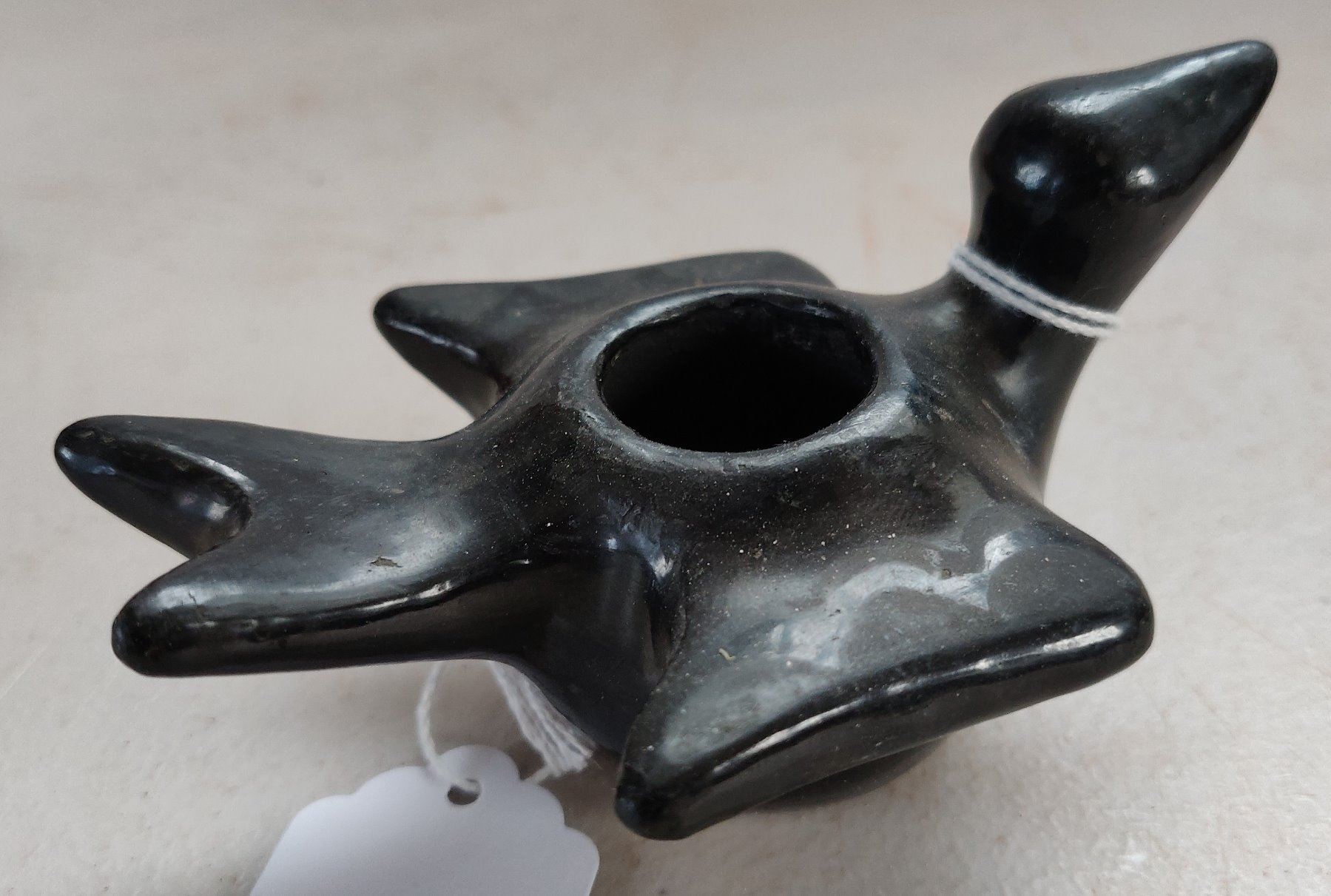 5 Pueblo Pottery Items, c. 1930s-50s. Made of clay and paint, the largest measures 7". Hopi, Santa Clara, Arizona, New Mexico. One signed by Leah Polacca. Condition: Minor wear, see images. Shipping: $40.00 USA estimate only, w/insurance and signature, due to weight and value.
