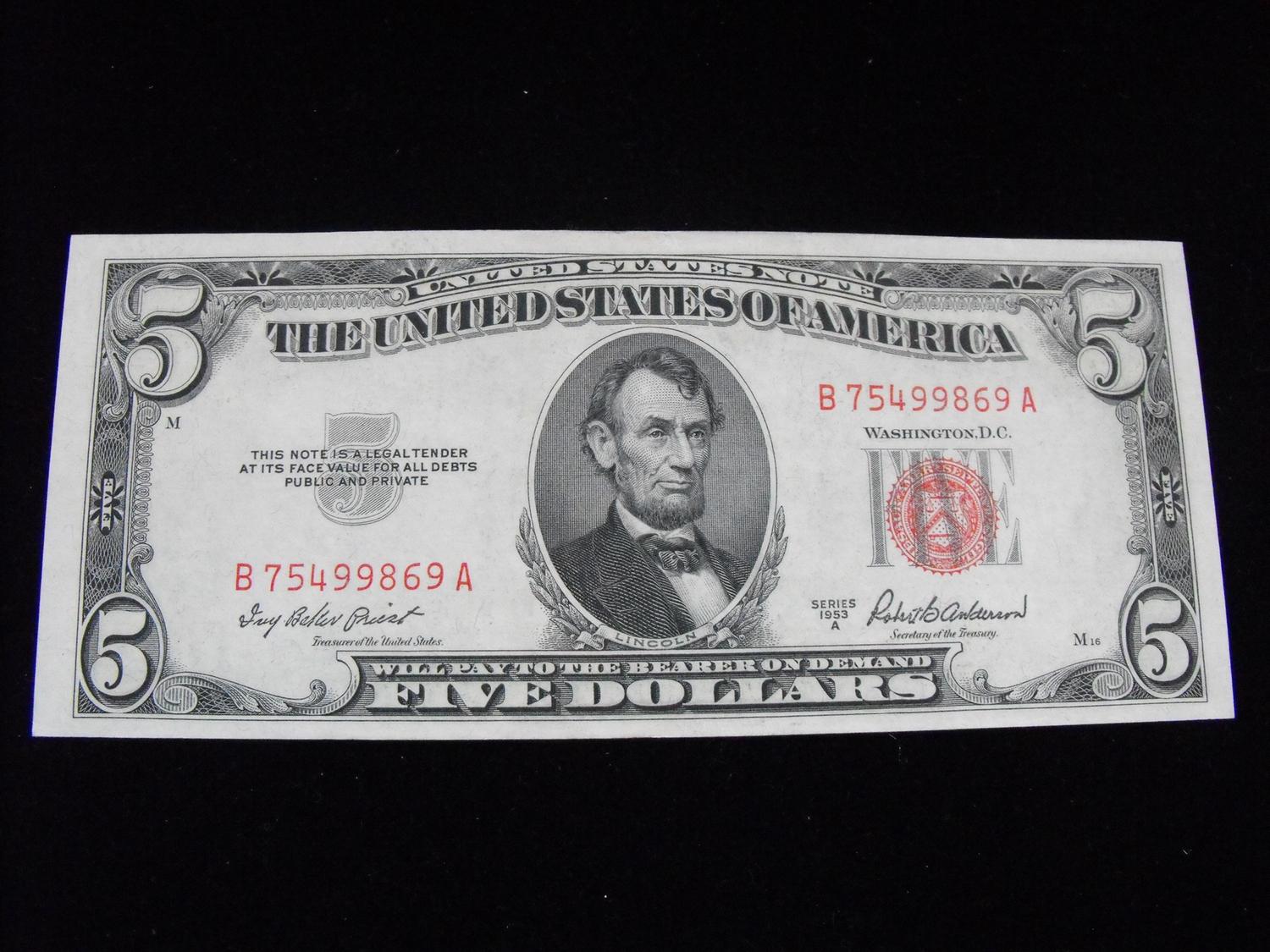 $5 RED SEAL 1953 A SUPER CENTERING UNC