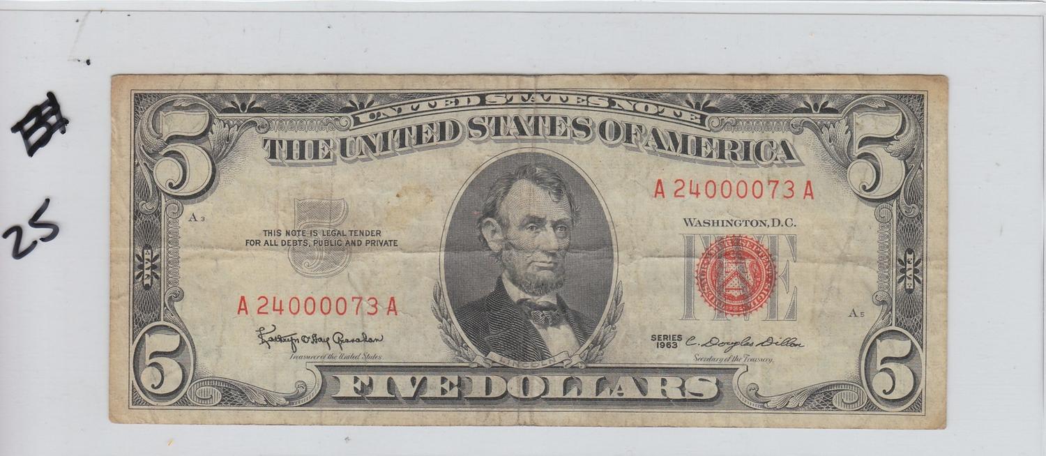 $5 RED SEAL FANCY SERIAL NUMBER 1963