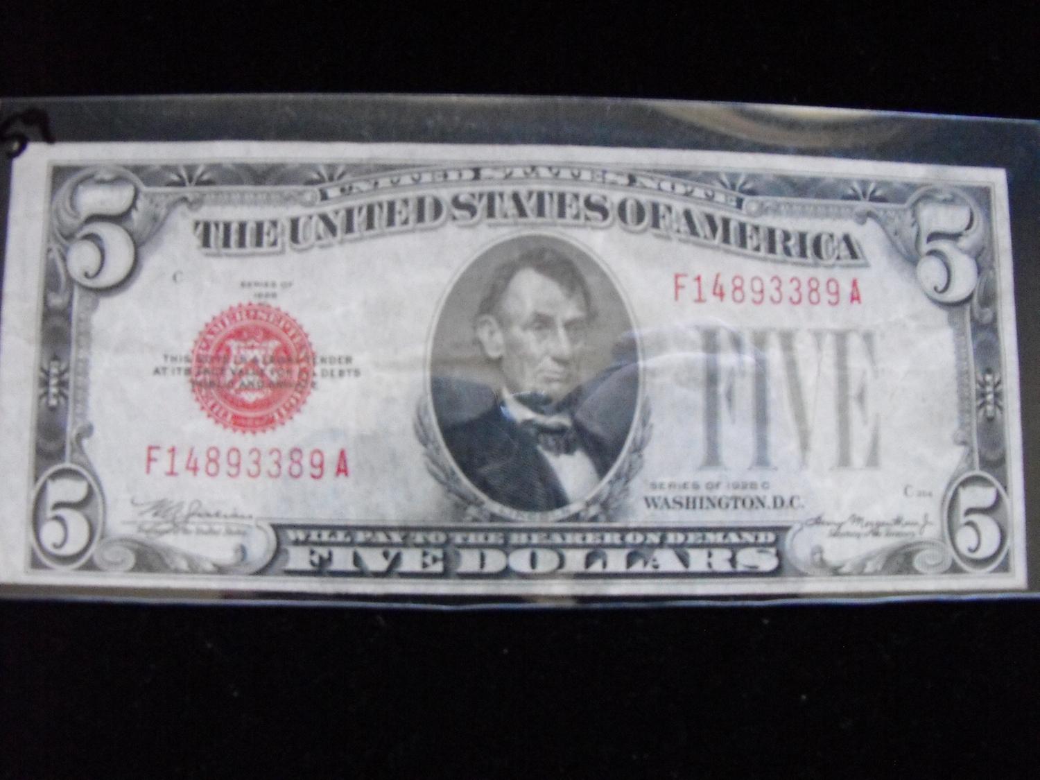 $5 RED SEAL LEGAL TENDER 1928 C OLD SERIES