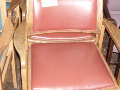 5 RED VINYL WOOD ARM CHAIRS