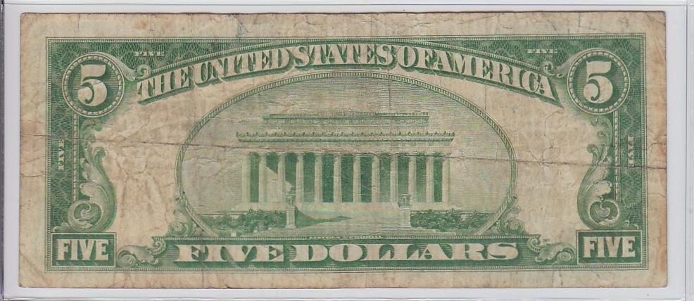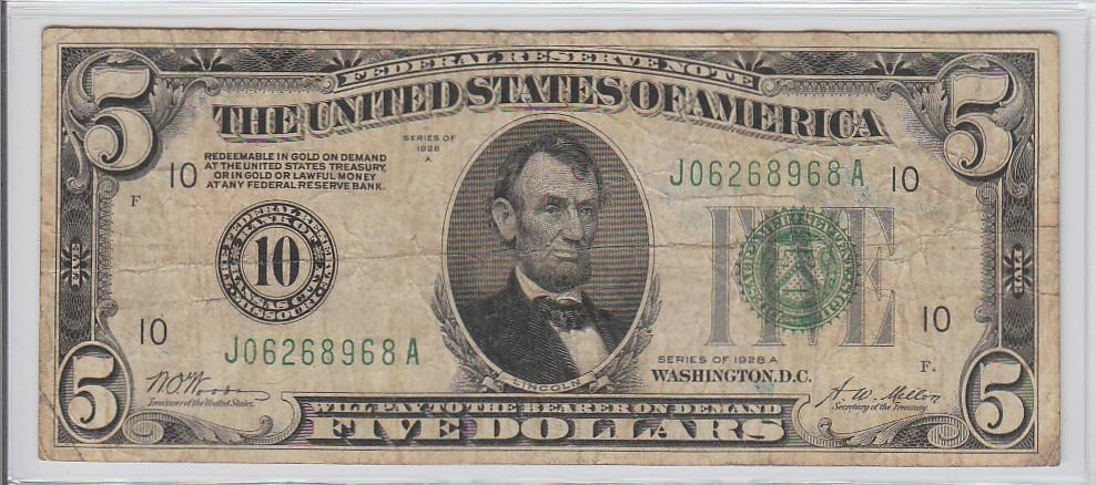 $5 REDEEMABLE IN GOLD FRN 1928 NUMERICAL 10