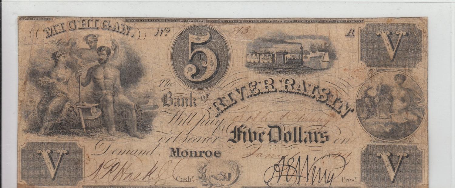 $5 RIVER RAISIN MICHIGAN OBSOLETE1844