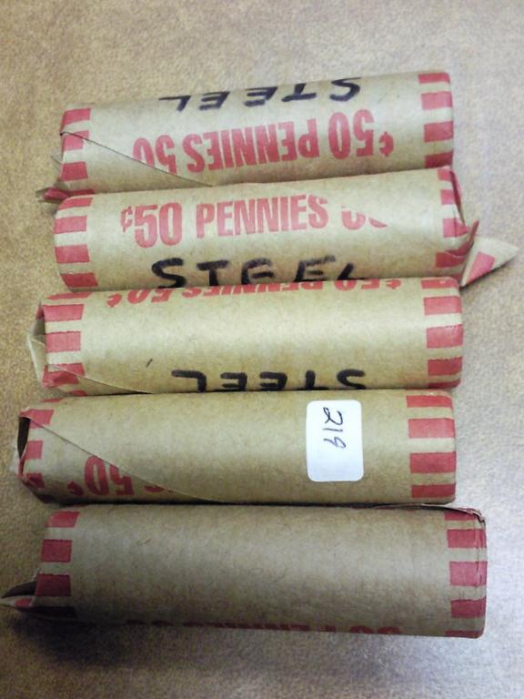 5 ROLLS OF 1943 STEEL LINCOLN WAR CENTS