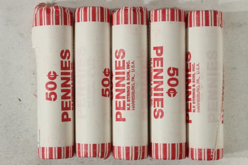 5 ROLLS OF 2012-P SHIELD LINCOLN CENTS BU