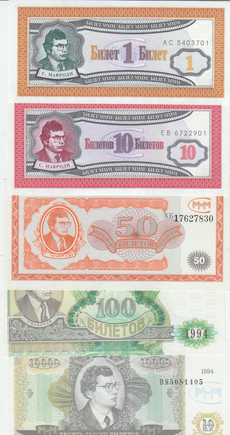 5 RUSSIA CCCP MMM NOTES UNC SET 1 - 10000 RUBLES