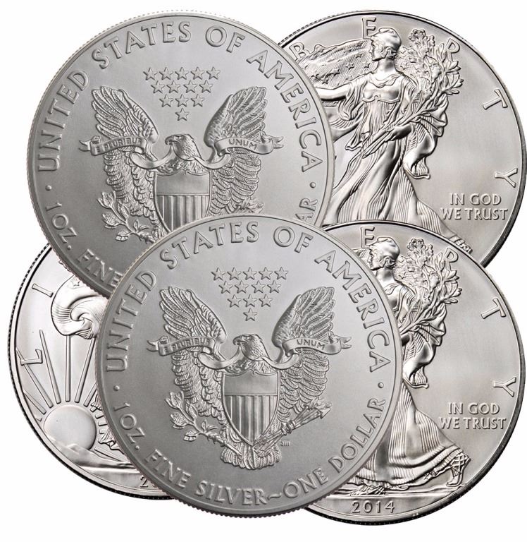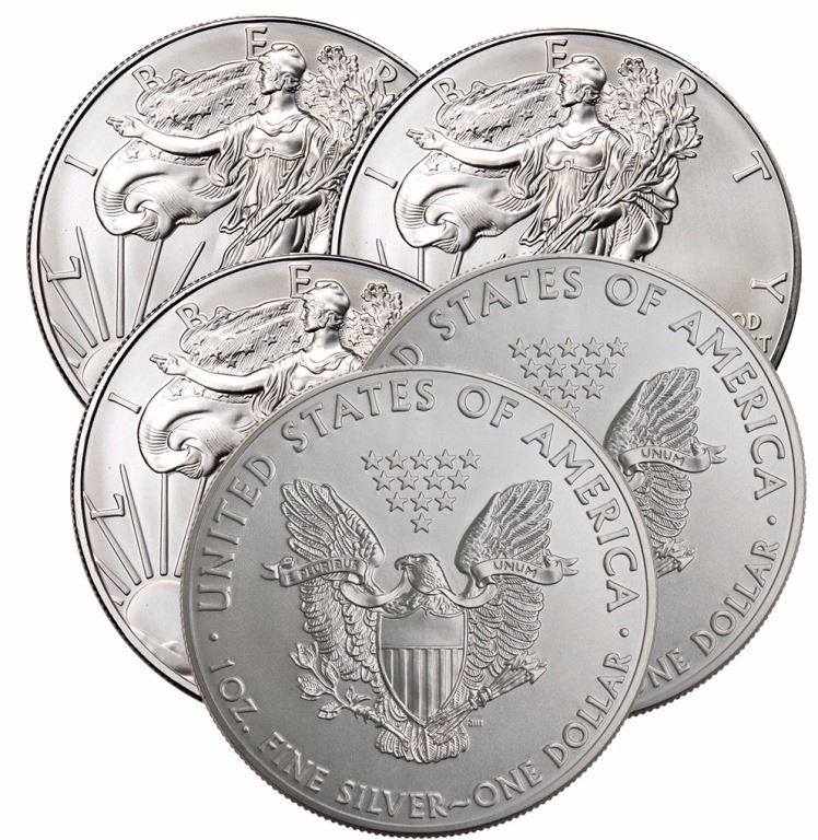 (5) Random Date US Silver Eagles- BU Grade