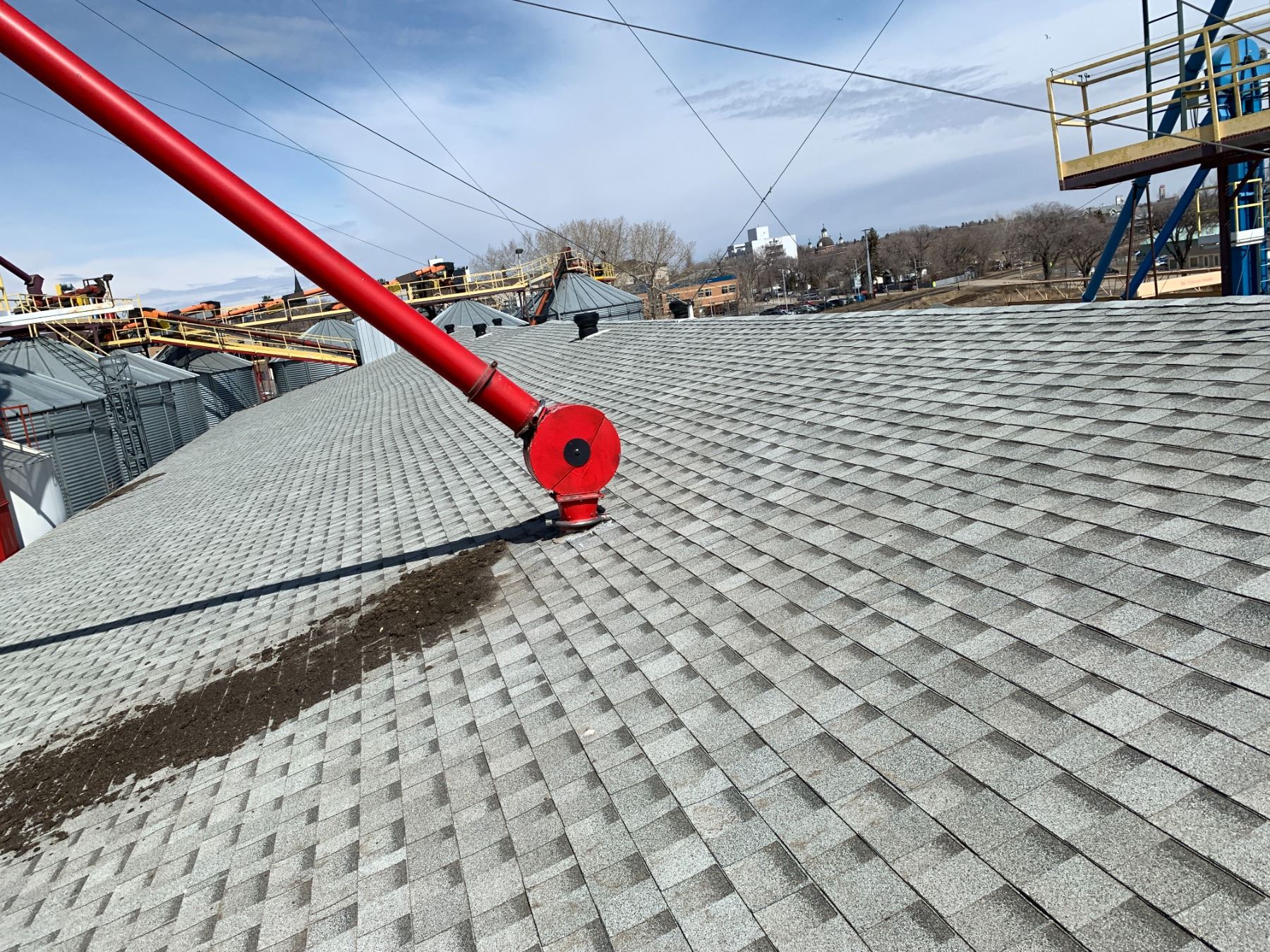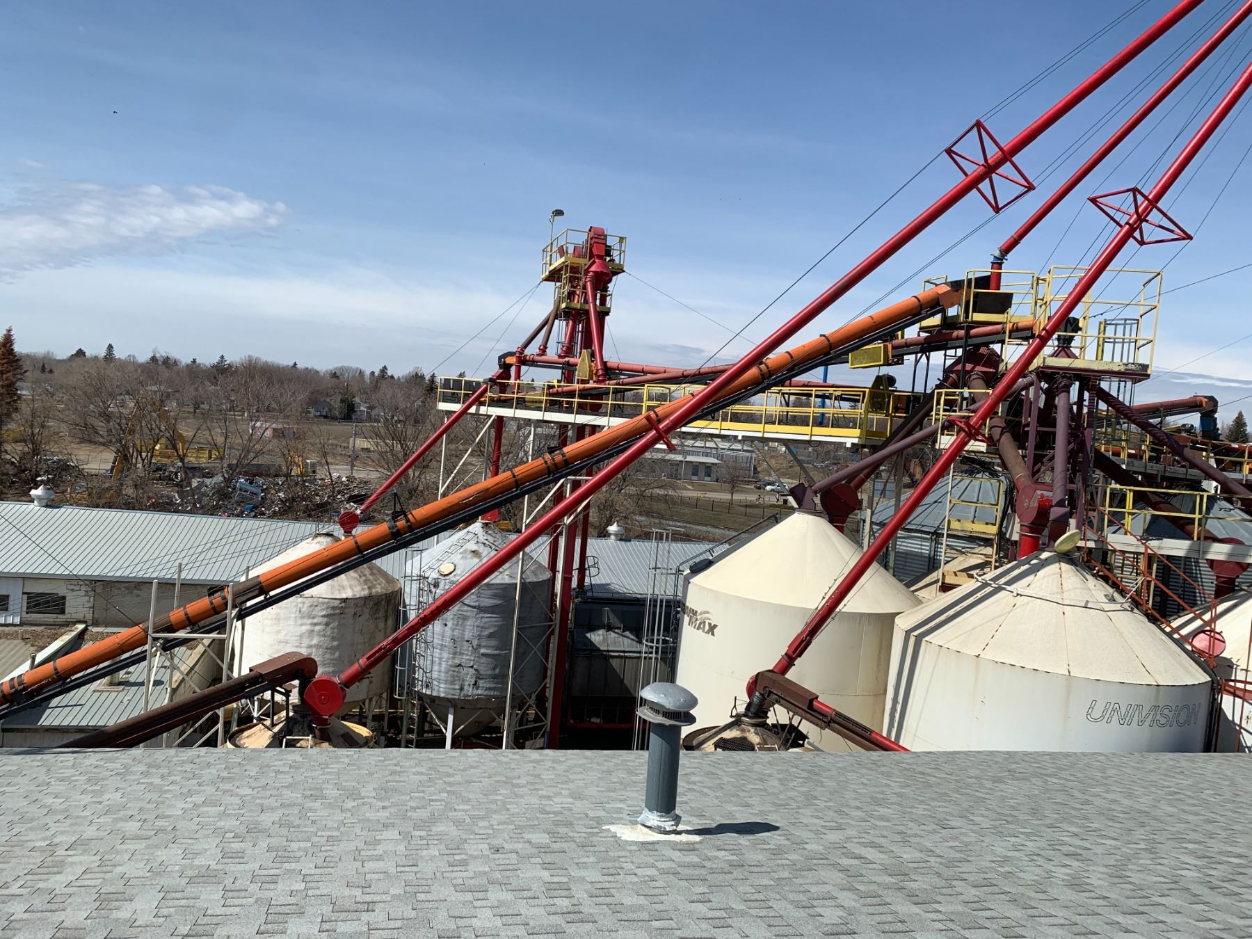 5 Red + 1 Blue Bucket Elevators, Quantity of Transfer Conveyors + Quantity of walkway above Graineries - Approx 7 Conveyors - Purchaser is solely responsible for dismantling and removal of all lots. Lots 43, 44, 45, and 46 are to be removed first, Lots 1 - 42 are to be removed second all remaining lots removed after Lots 1 - 46.