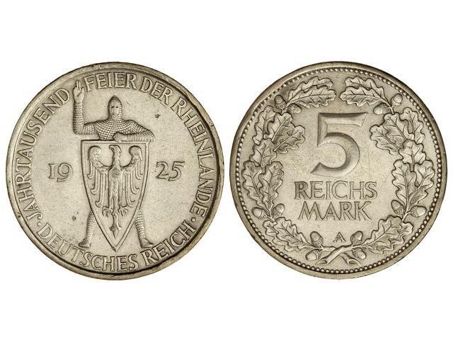 5 Reichsmark. - 1925-A. - REPÚBLICA DE WEIMAR. - AR. Milenario de Renania. KM-47. EBC. - -
