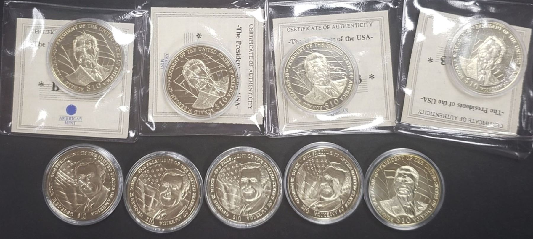 4-Republic of Liberia George Bush $10 coins BY AMERICAN MINT (9 TOTAL)