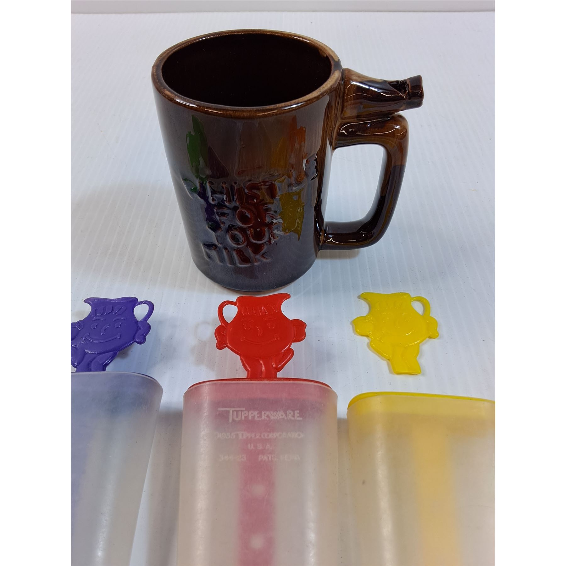 (5) Retro Kool-Aid Popsicle Makers (Yellow Handle Fixing) & Ceramic Milk Mug