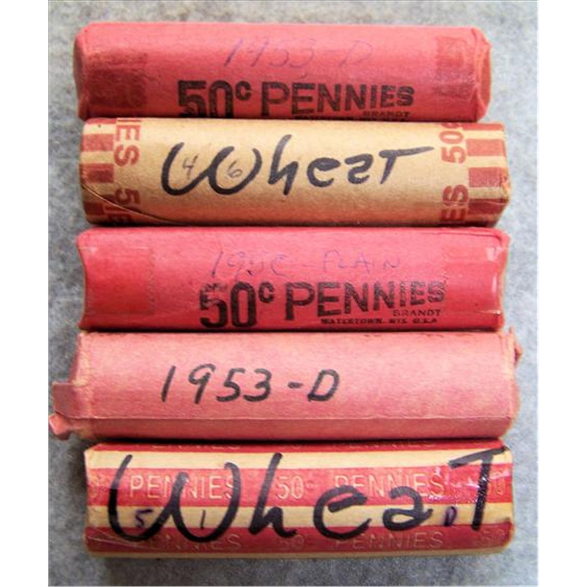 5 Rolls Linclon Wheat Cents - 1940' - 1950's