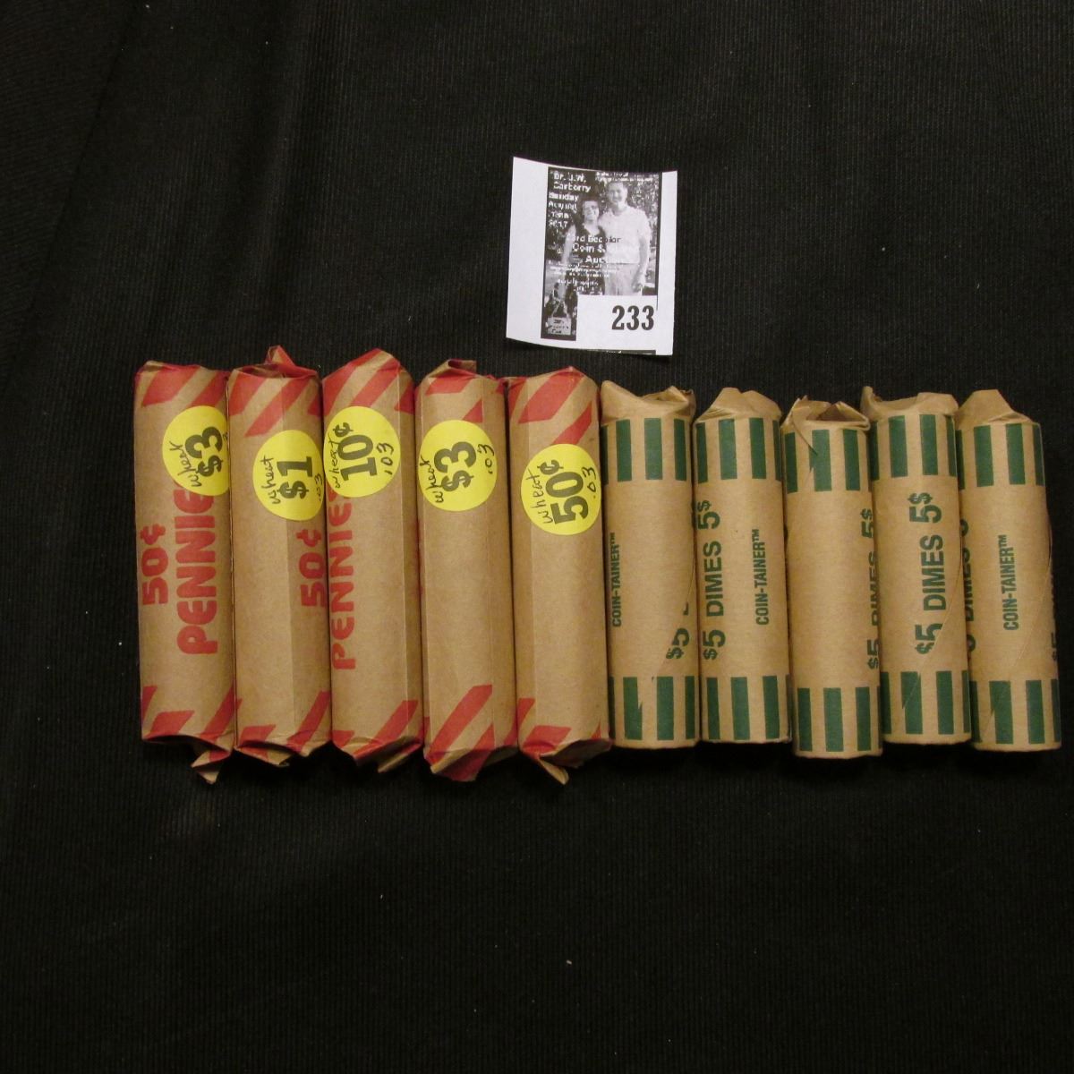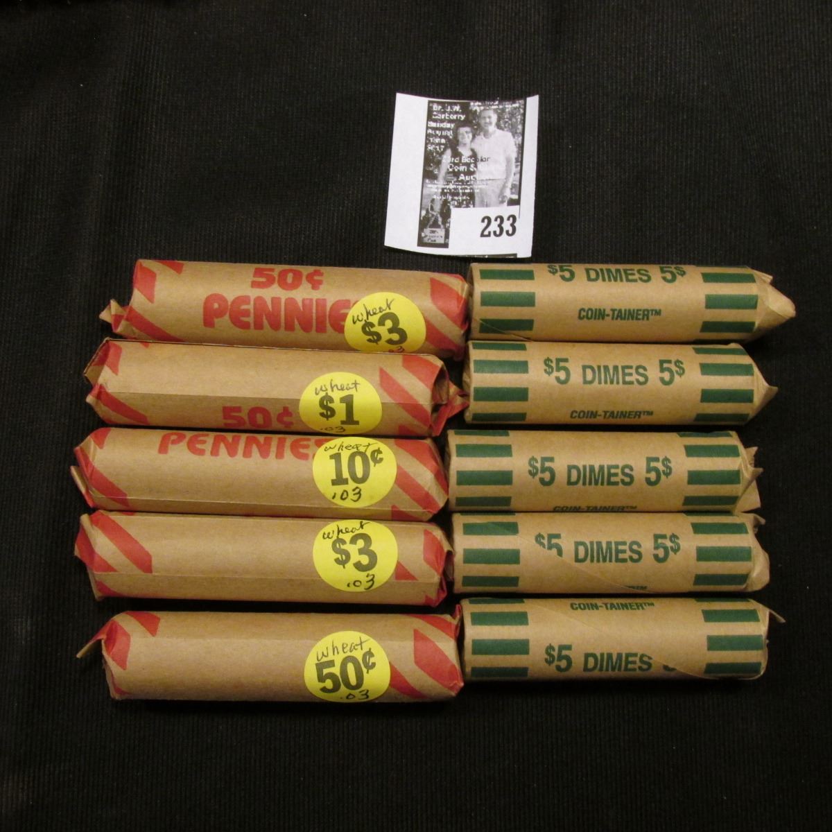 (5) Rolls of Clad Roosevelt Dimes & (5) Rolls of Wheat Cents, which I have not had time to check for