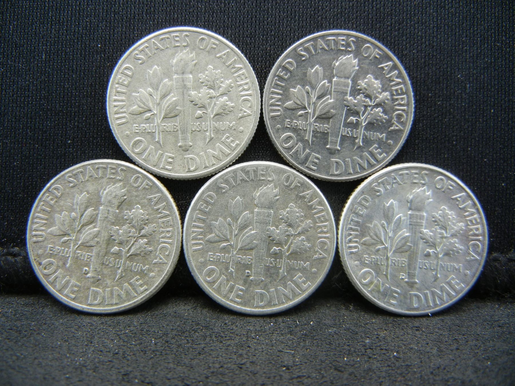 (5) Roosevelt Dimes, 60's, Some Mint Marks