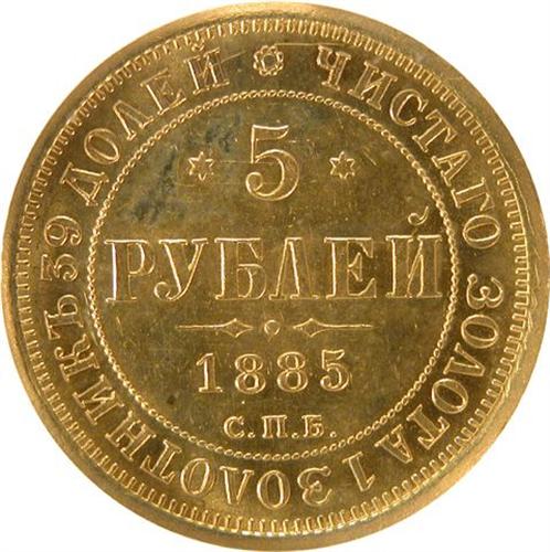 5 Roubles 1885 ICG MS-62. A strongly struck piece with great lustre