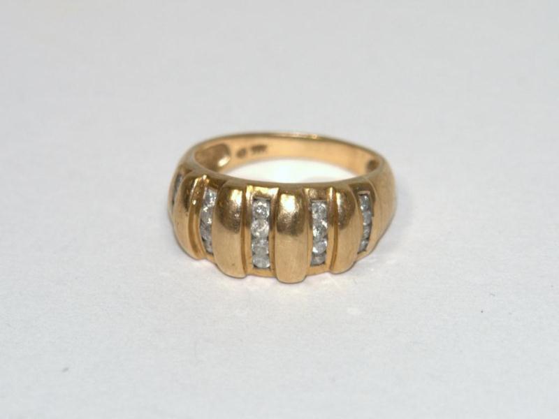 Total Retail $3,270 14Kt Yellow Gold -- (#1) Retail Price $3,270 14Kt Yellow Gold -- 5 Row Diamonds Chanel Set Hand Made Ladies Ring --