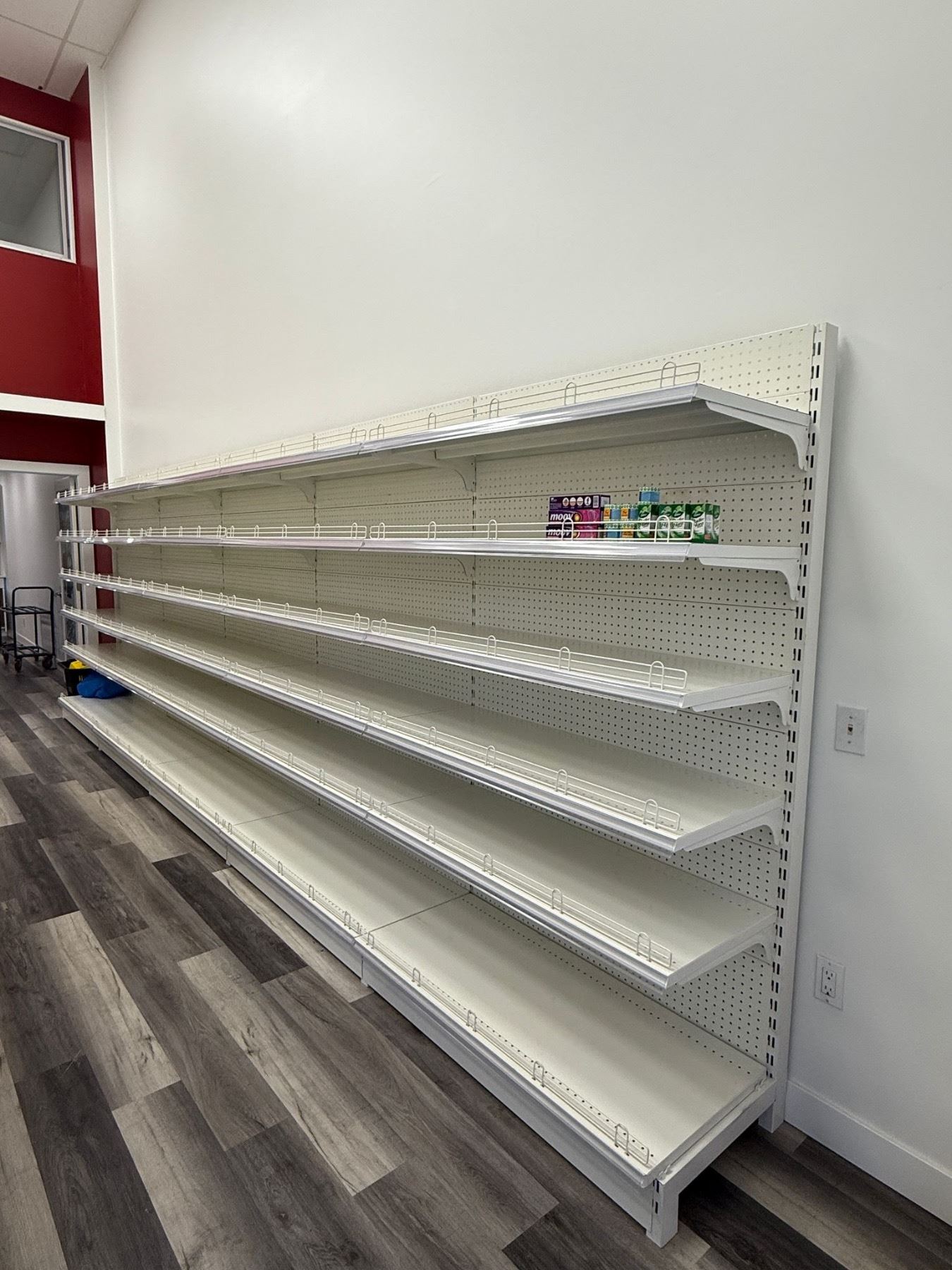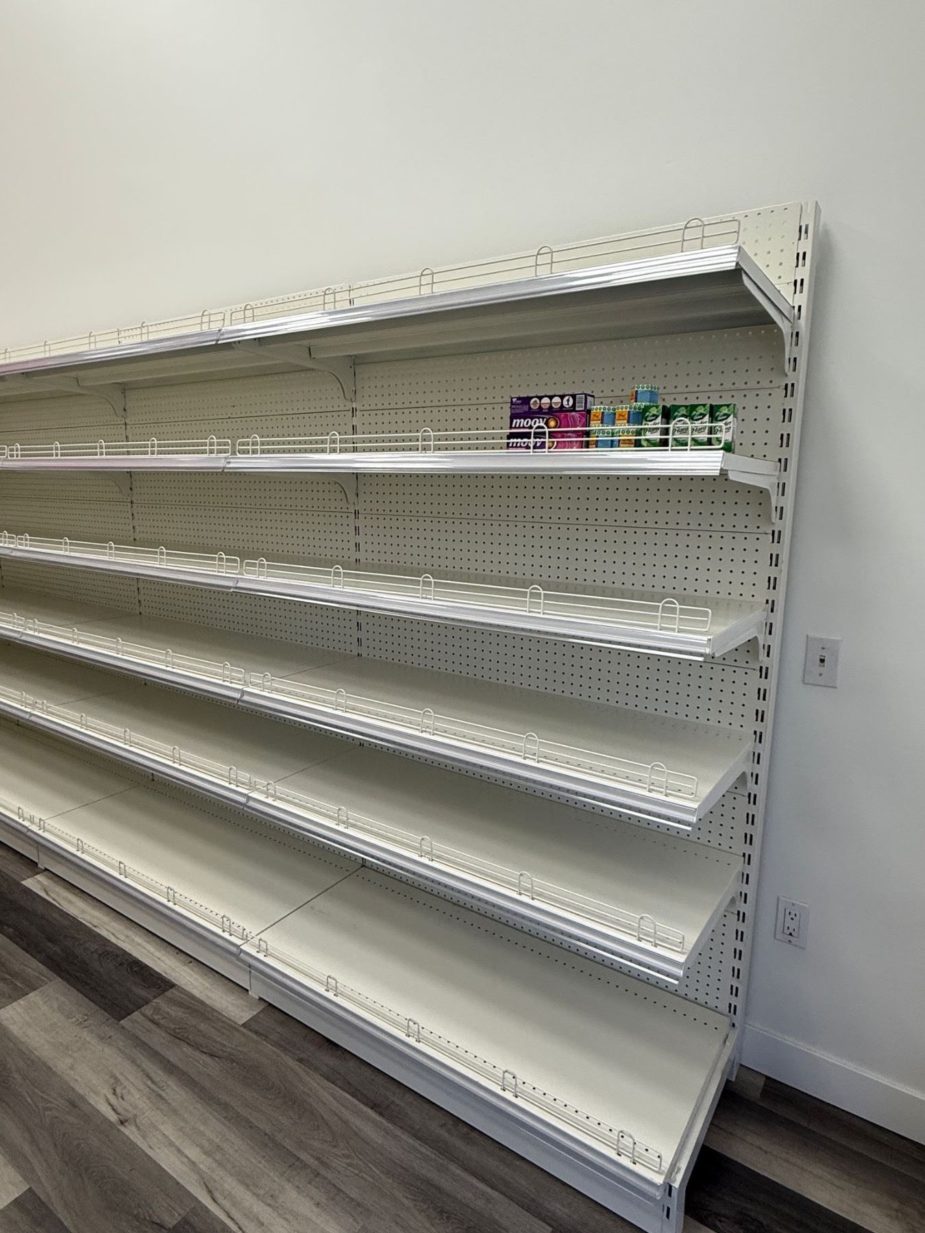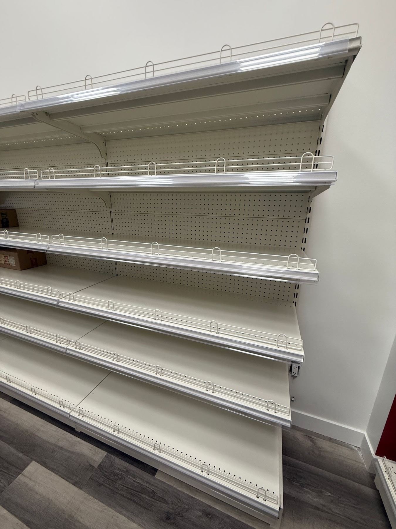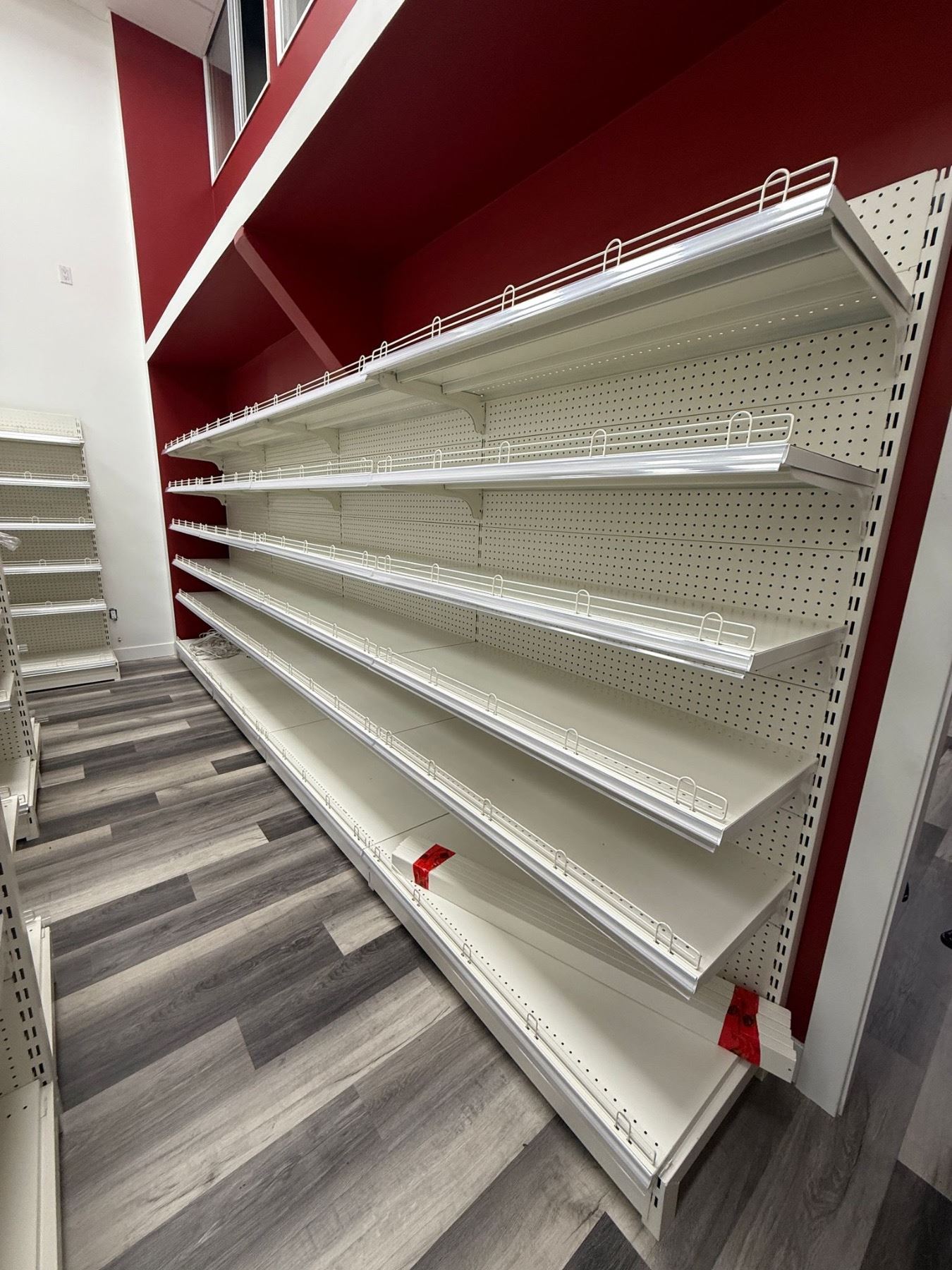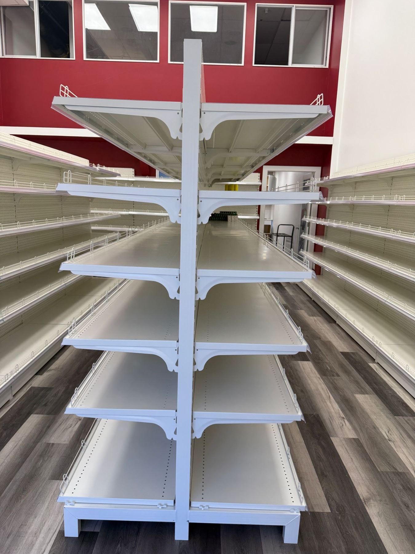 Lot 02, 03 (double shelves with length x width x height) : 188in x 21in x 79in ( 6 shelves high x 4columns