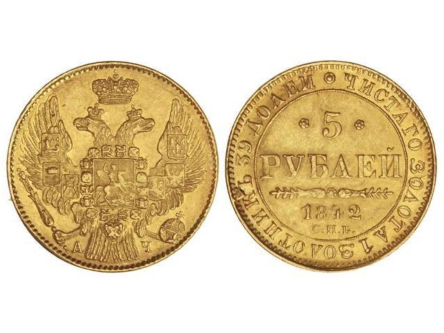 5 Rublos. - 1842-AY. - NICOLÁS I. - SAN PETERSBURGO. - AU. Ensayador: A¶. (Rayitas de ajuste y pequeña rotura de cuño en reverso). C-175,1. EBC-. - -